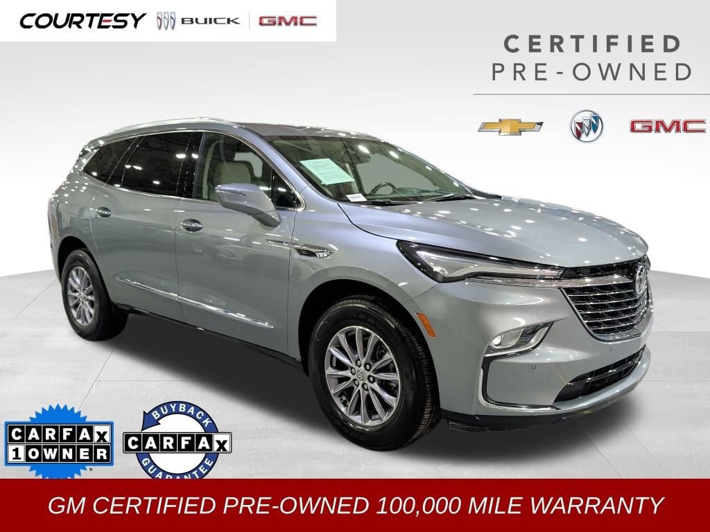 ONE OWNER NEW CAR TRADE IN***GM CERTIFIED PRE-OWNED 100,000 MILE WARRANTY***, 3.6L V6 SIDI VVT, Front & Rear Park Assist, Heated Steering Wheel, Preferred Equipment Group 1SL, Premium audio system: Buick Infotainment System. CARFAX One-Owner. Clean CARFAX. Certified. Moonstone Gray Metallic 2023 Buick Enclave Essence FWD 9-Speed Automatic 3.6L V6 SIDI VVTRecent Arrival!Buick Certified Pre-Owned Details:* Powertrain Limited Warranty: 72 Month/100,000 Mile (whichever comes first) from original in-service date* Roadside Assistance* Warranty Deductible: $0* Transferable Warranty* 24 months/24,000 miles (whichever comes first) Certified Pre-Owned Scheduled Maintenance Plan and 3 days/150 miles (whichever comes first) Vehicle Exchange Program. 1 month of OnStar Safety & Security Plan, Navigation Services, Remote Access Plan, and 1 month or 3GB of 4G LTE data (whichever comes first).* Limited Warranty: 12 Month/12,000 Mile (whichever comes first) from certified purchase date* 172 Point Inspection* Vehicle History