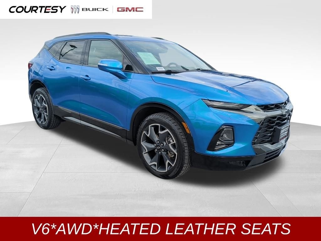 NEW CAR TRADE IN***, 3.6L V6 SIDI DOHC VVT, AWD, Heavy-Duty Cooling System, Hitch Guidance, Hitch Guidance w/Hitch View, Navigation System, Preferred Equipment Group 1RS, Trailering Equipment. New Price! Clean CARFAX. Certified. Bright Blue Metallic 2021 Chevrolet Blazer RS AWD 9-Speed Automatic 3.6L V6 SIDI DOHC VVTRecent Arrival! Odometer is 12846 miles below market average! 19/26 City/Highway MPGChevrolet Certified Pre-Owned Details:* Vehicle History* 172 Point Inspection* Powertrain Limited Warranty: 72 Month/100,000 Mile (whichever comes first) from original in-service date* Warranty Deductible: $0* 24 months/24,000 miles (whichever comes first) Certified Pre-Owned Scheduled Maintenance Plan and 3 days/150 miles (whichever comes first) Vehicle Exchange Program. SiriusXM 3-month trial subscription.* Roadside Assistance* Transferable Warranty* Limited Warranty: 12 Month/12,000 Mile (whichever comes first) from certified purchase dateAwards:* JD Power Automotive Performance, Execution and Layout (APEAL) Study