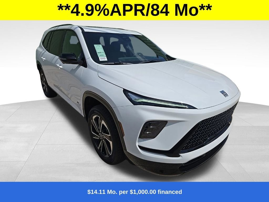 Bluetooth Backup Camera Power Package (110-Volt Power Outlet, 2nd Row 1-Touch Flat Folding Seat, 3rd Row 60/40 Power Split-Folding Bench Seat, Head-Up Display, Heated Wiper Park, Inside Rearview Auo-Dimming Rear Camera Mirror, Memory Settings, and Universal Home Remote), FWD, 12 Speakers, 3rd row seats: split-bench, 4-Wheel Disc Brakes, ABS brakes, Air Conditioning, Alloy wheels, AM/FM radio: SiriusXM with 360L, Apple CarPlay/Android Auto, Auto High-beam Headlights, Auto-dimming door mirrors, Auto-dimming Rear-View mirror, Automatic temperature control, Bose Premium 12-Speaker Audio System with Subwoofer, Brake assist, Bumpers: body-color, Compass, Delay-off headlights, Driver 4-Way Power Lumbar Seat Adjuster, Driver 8-Way Power Seat Adjuster, Driver door bin, Driver vanity mirror, Dual front impact airbags, Dual front side impact airbags, Electronic Stability Control, Emergency communication system: OnStar and Buick connected services capable, Four wheel independent suspension, Front anti-roll bar, Front Bucket Seats, Front Center Armrest, Front dual zone A/C, Front Passenger 4-Way Power Lumbar Seat Adjuster, Front Passenger 6-Way Power Seat Adjuster, Front reading lights, Fully automatic headlights, Heated door mirrors, Heated Driver and Front Passenger Seats, Heated front seats, Heated steering wheel, Illuminated entry, Leather steering wheel, Low tire pressure warning, Navigation System, Occupant sensing airbag, Outside temperature display, Overhead airbag, Overhead console, Panic alarm, Passenger door bin, Passenger vanity mirror, Perforated Leatherette Seat Trim, Power door mirrors, Power driver seat, Power Liftgate, Power Panoramic Sunroof with Sunshade, Power passenger seat, Power steering, Power windows, Premium audio system: Buick Infotainment System, Radio data system, Radio: Infotainment Center, Rear air conditioning, Rear anti-roll bar, Rear reading lights, Rear side impact airbag, Rear window defroster, Rear window wiper, Remote keyless entry, Security system, SiriusXM with 360L Trial Subscription, Speed control, Speed-sensing steering, Spoiler, Sport steering wheel, Steering wheel mounted audio controls, Tachometer, Telescoping steering wheel, Tilt steering wheel, Traction control, Trip computer, Turn signal indicator mirrors, Variably intermittent wipers, Voltmeter, Wheels: 20 Alloy with High Gloss Black and Machine Finish, Wireless Apple CarPlay, and Wireless Google Android Auto.