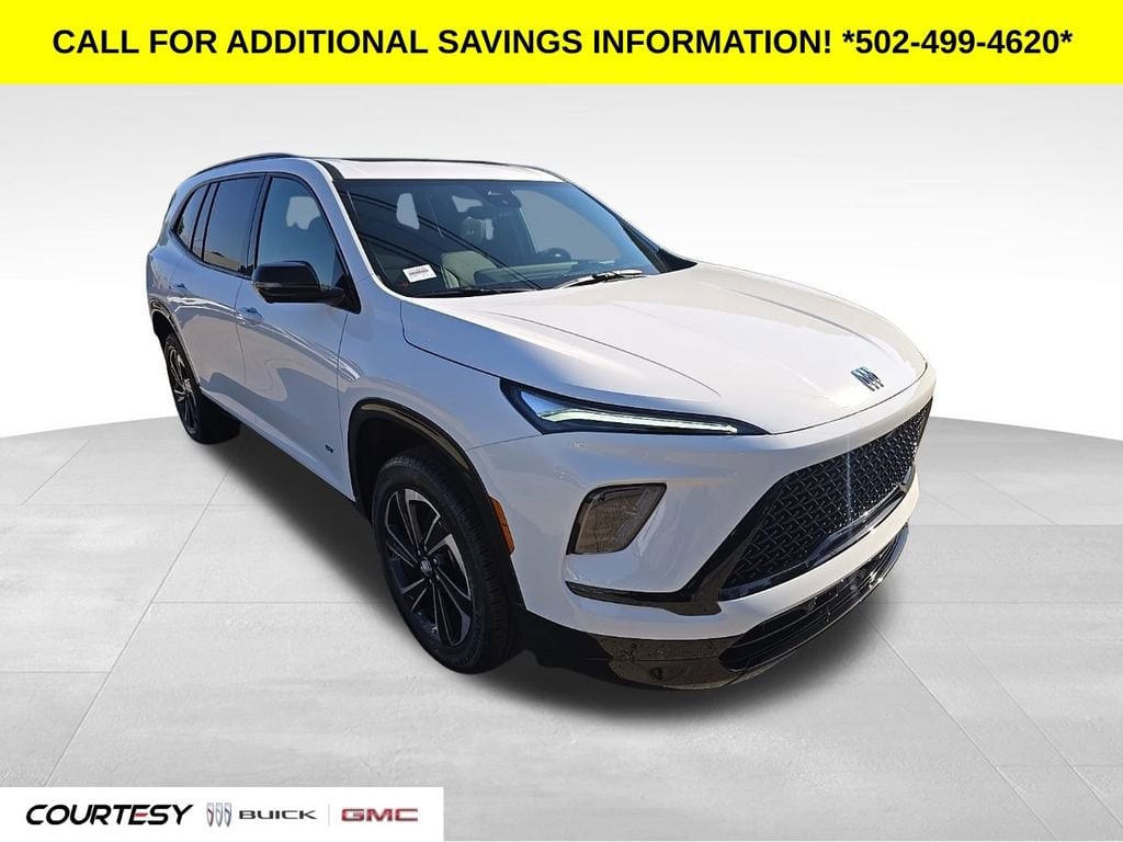 Bluetooth Backup Camera Power Package (110-Volt Power Outlet, 2nd Row 1-Touch Flat Folding Seat, 3rd Row 60/40 Power Split-Folding Bench, Head-Up Display, Heated Wiper Park, Inside Rearview Auto-Dimming Rear Camera Mirror, Memory Settings, and Universal Home Remote), Preferred Equipment Group 1SM, FWD, 12 Speakers, 3rd row seats: split-bench, 4-Wheel Disc Brakes, ABS brakes, Air Conditioning, Alloy wheels, AM/FM radio: SiriusXM with 360L, Apple CarPlay/Android Auto, Auto High-beam Headlights, Auto-dimming door mirrors, Auto-dimming Rear-View mirror, Automatic temperature control, Bose Premium 12-Speaker Audio System, Brake assist, Bumpers: body-color, Compass, Delay-off headlights, Driver 4-Way Power Lumbar Seat Adjuster, Driver 8-Way Power Seat Adjuster, Driver door bin, Driver vanity mirror, Dual front impact airbags, Dual front side impact airbags, Electronic Stability Control, Emergency communication system: OnStar and Buick connected services capable, Four wheel independent suspension, Front anti-roll bar, Front Bucket Seats, Front Center Armrest, Front dual zone A/C, Front Passenger 4-Way Power Lumbar Seat Adjuster, Front Passenger 6-Way Power Seat Adjuster, Front reading lights, Fully automatic headlights, Heated door mirrors, Heated Driver & Front Passenger Seats, Heated front seats, Heated steering wheel, Illuminated entry, Leather steering wheel, Low tire pressure warning, Navigation System, Occupant sensing airbag, Outside temperature display, Overhead airbag, Overhead console, Panic alarm, Passenger door bin, Passenger vanity mirror, Perforated Leatherette Seat Trim, Power door mirrors, Power driver seat, Power Liftgate, Power Panoramic Sunroof w/Sunshade, Power passenger seat, Power steering, Power windows, Premium audio system: Buick Infotainment System, Radio data system, Radio: Infotainment Center, Rear air conditioning, Rear anti-roll bar, Rear reading lights, Rear side impact airbag, Rear window defroster, Rear window wiper, Remote keyless entry, Security system, SiriusXM w/360L Trial Subscription, Speed control, Speed-sensing steering, Spoiler, Sport steering wheel, Steering wheel mounted audio controls, Tachometer, Telescoping steering wheel, Tilt steering wheel, Traction control, Trip computer, Turn signal indicator mirrors, Variably intermittent wipers, Voltmeter, Wheels: 20 Alloy w/High Gloss Black, Wireless Apple CarPlay, and Wireless Google Android Auto.