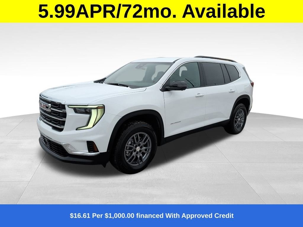 Bluetooth Backup Camera Preferred Equipment Group 4SC, FWD, After Dark Cloth, 12 Speakers, 18 x 7.5 Aluminum Wheels, 2-Way Driver Power Lumbar Seat Adjuster, 3.49 Final Drive Axle Ratio, 3rd row seats: split-bench, 4-Way Manual Front Passenger Seat Adjuster, 4-Wheel Disc Brakes, 8-Passenger Seating (2-3-3 Seating Configuration), 8-Way Power Driver Seat Adjuster, ABS brakes, Air Conditioning, Alloy wheels, AM/FM radio: SiriusXM with 360L, Apple CarPlay/Android Auto, Auto High-beam Headlights, Auto-dimming Rear-View mirror, Automatic temperature control, Black Wheel Lug Nuts, Bodyside moldings, Bose Premium 12-Speaker System with Sub-Woofer, Brake assist, Bumpers: body-color, Cloth Seat Trim, Compass, Delay-off headlights, Driver door bin, Driver vanity mirror, Dual front impact airbags, Dual front side impact airbags, Electronic Stability Control, Emergency communication system: OnStar Services capable, Exterior Parking Camera Rear, Four wheel independent suspension, Front anti-roll bar, Front Bucket Seats, Front Center Armrest, Front dual zone A/C, Front fog lights, Front reading lights, Fully automatic headlights, Heated door mirrors, Heated Driver and Front Passenger Seats, Heated front seats, Heated steering wheel, Illuminated entry, Leather steering wheel, Low tire pressure warning, Navigation System, Occupant sensing airbag, Outside temperature display, Overhead airbag, Overhead console, Panic alarm, Passenger door bin, Passenger vanity mirror, Power door mirrors, Power driver seat, Power Liftgate, Power steering, Power windows, Radio data system, Radio: 15 Diagonal Premium GMC Infotainment System, Rear air conditioning, Rear anti-roll bar, Rear reading lights, Rear seat center armrest, Rear side impact airbag, Rear window defroster, Rear window wiper, Remote keyless entry, Security system, SiriusXM with 360L, Speed control, Speed-sensing steering, Split folding rear seat, Spoiler, Sport steering wheel, Steering wheel mounted audio controls, Tachometer, Telescoping steering wheel, Tilt steering wheel, Traction control, Trip computer, Turn signal indicator mirrors, Variably intermittent wipers, and Voltmeter.